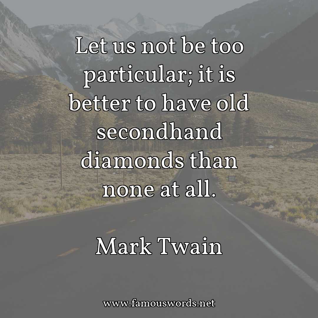 Today 115 years ago, on 04/21/1910, Mark Twain passed away at the age of 74. Hence the quote of the day: “Let us not be too particular; it is better to have old secondhand diamonds than none at all.” (Mark Twain)
