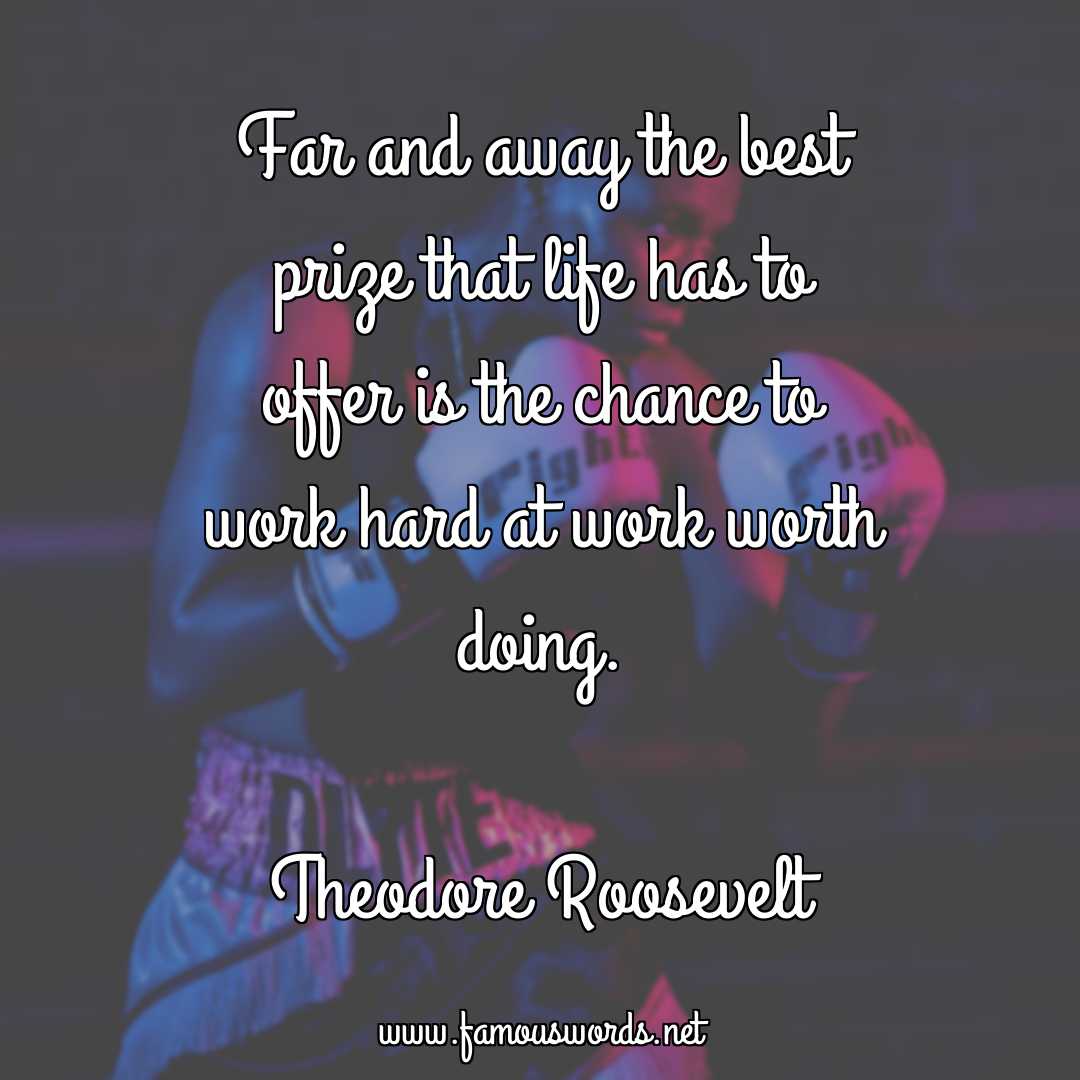 The quote of the day is: “Far and away the best prize that life has to offer is the chance to work hard at work worth doing.” (Theodore Roosevelt)
