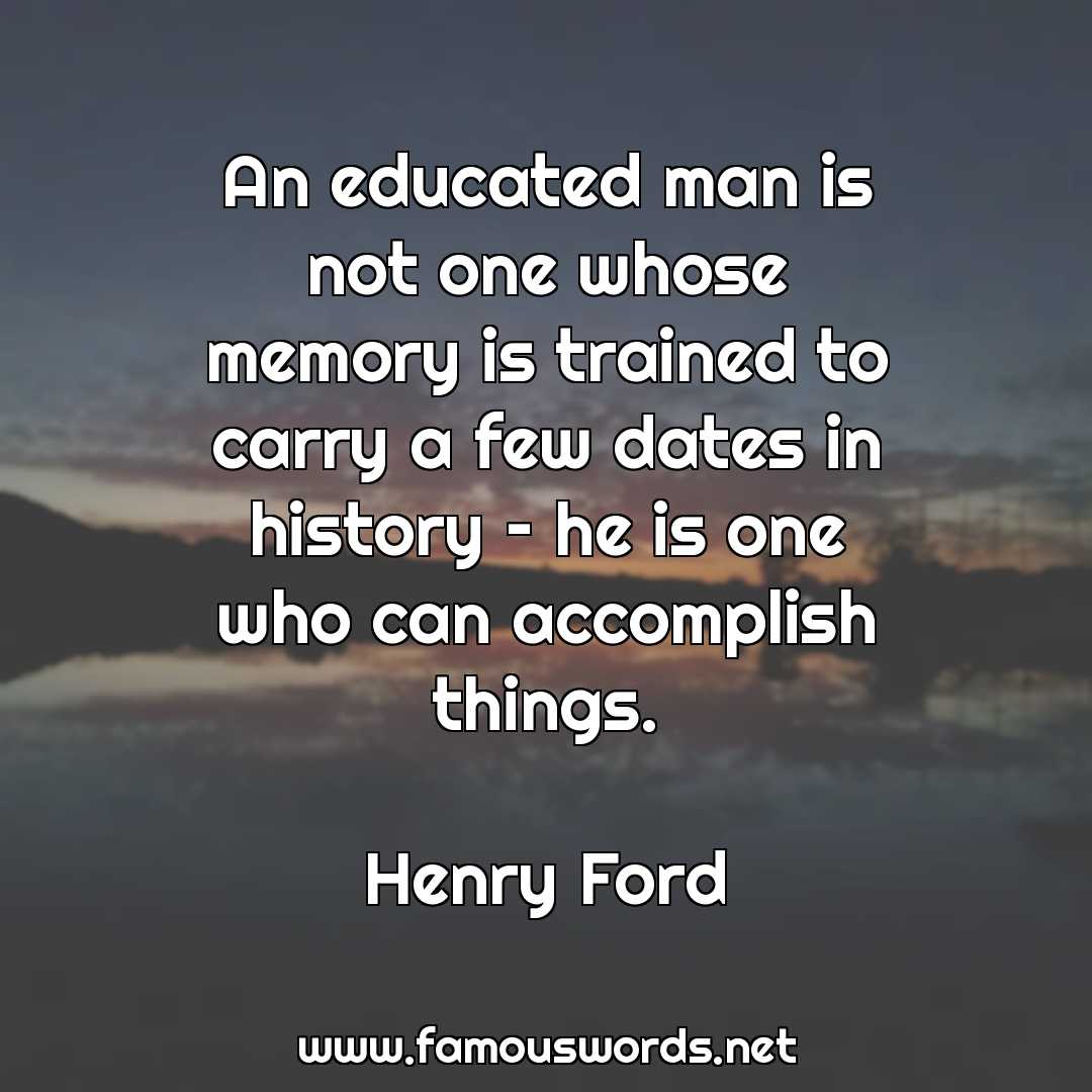 Today’s quote of the day is: “An educated man is not one whose memory is trained to carry a few dates in history – he is one who can accomplish things.” (Henry Ford)