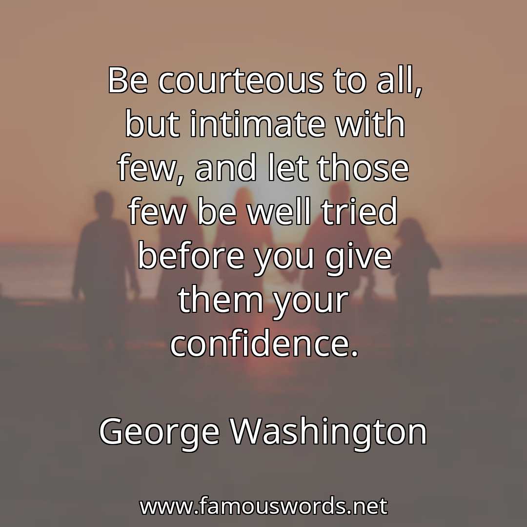 The quote of the day is: “Be courteous to all, but intimate with few, and let those few be well tried before you give them your confidence.” (George Washington)