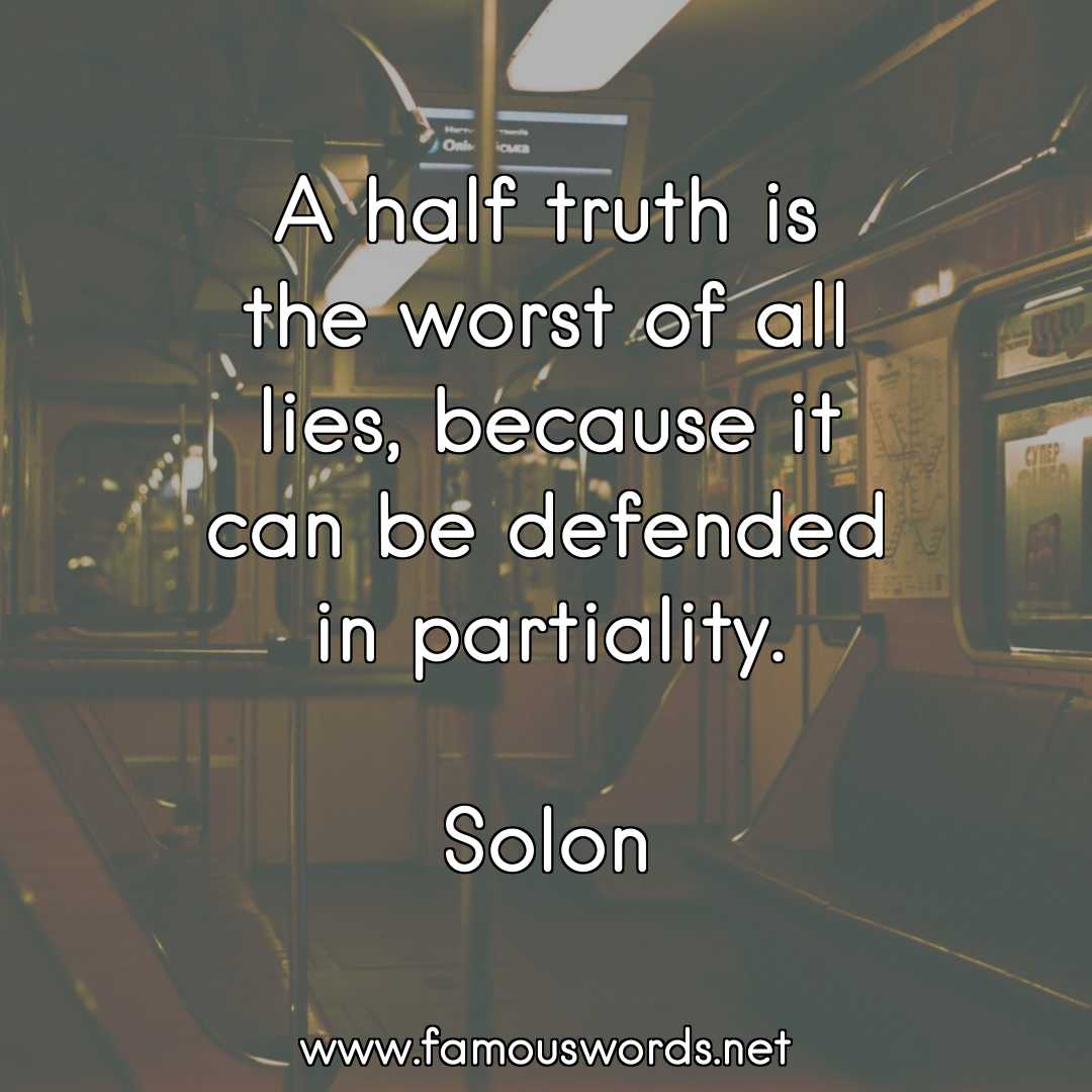 Today’s quote of the day is: “A half truth is the worst of all lies, because it can be defended in partiality.” (Solon)