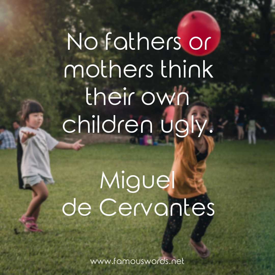 Today’s quote of the day is: “No fathers or mothers think their own children ugly.” (Miguel de Cervantes)