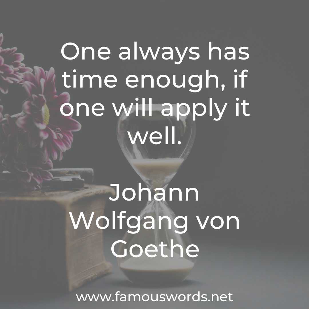 The quote of the day is: “One always has time enough, if one will apply it well.” (Johann Wolfgang von Goethe)