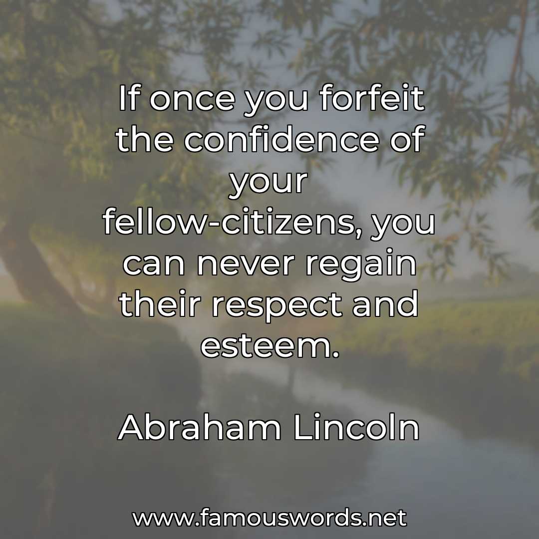 The quote of the day is: “If once you forfeit the confidence of your fellow-citizens, you can never regain their respect and esteem.” (Abraham Lincoln)
