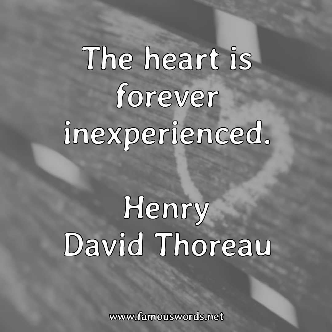 Today’s quote of the day is: “The heart is forever inexperienced.” (Henry David Thoreau)