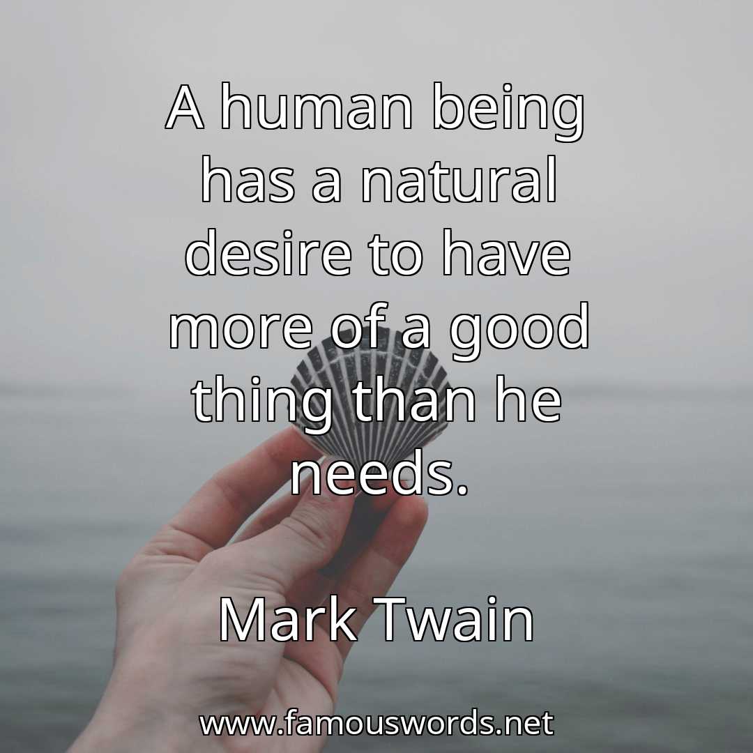 Today’s quote of the day is: “A human being has a natural desire to have more of a good thing than he needs.” (Mark Twain)