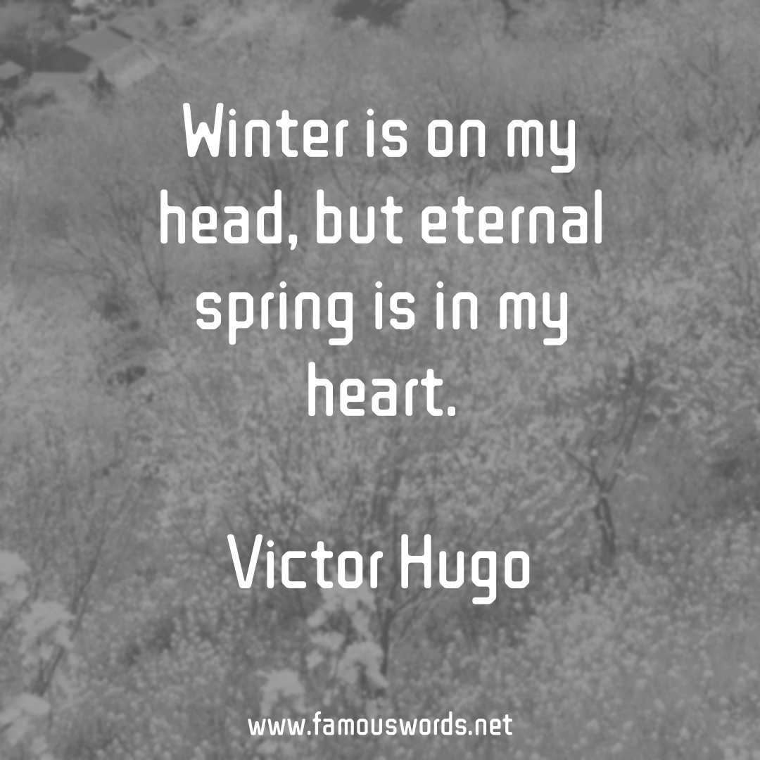 Today’s quote of the day is: “Winter is on my head, but eternal spring is in my heart.” (Victor Hugo)