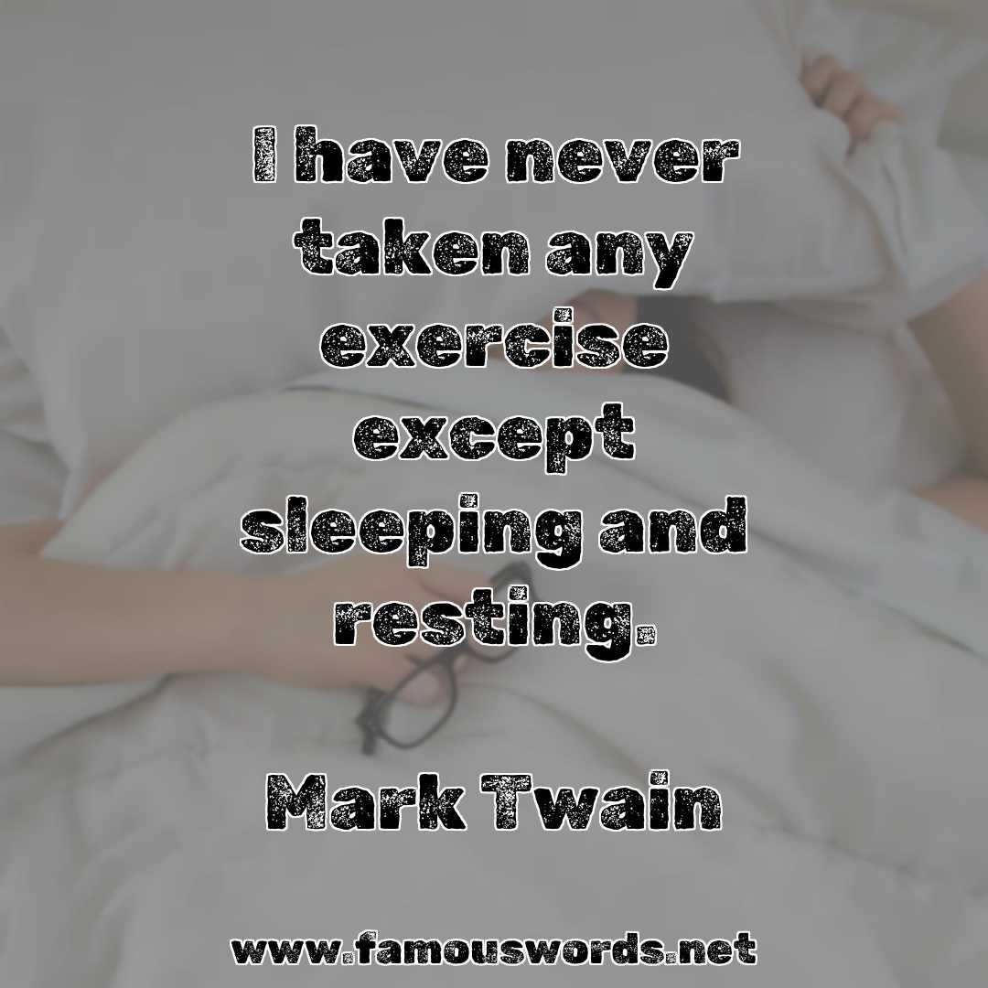 Today’s quote of the day is: “I have never taken any exercise except sleeping and resting.” (Mark Twain)