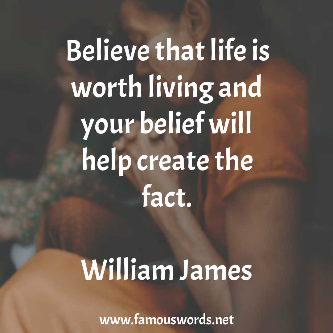 Today’s quote of the day is: “Believe that life is worth living and your belief will help create the fact.” (William James)