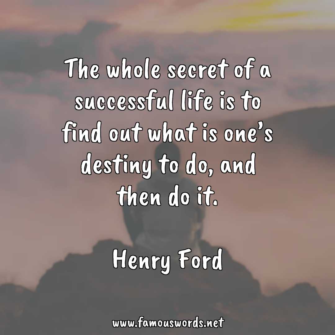 The quote of the day is: “The whole secret of a successful life is to find out what is one’s destiny to do, and then do it.” (Henry Ford)