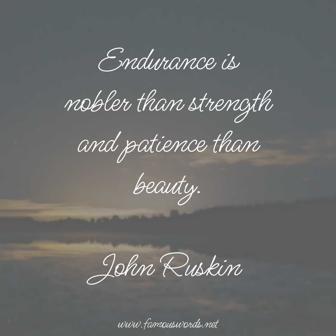 Today’s quote of the day is: “Endurance is nobler than strength and patience than beauty.” (John Ruskin)