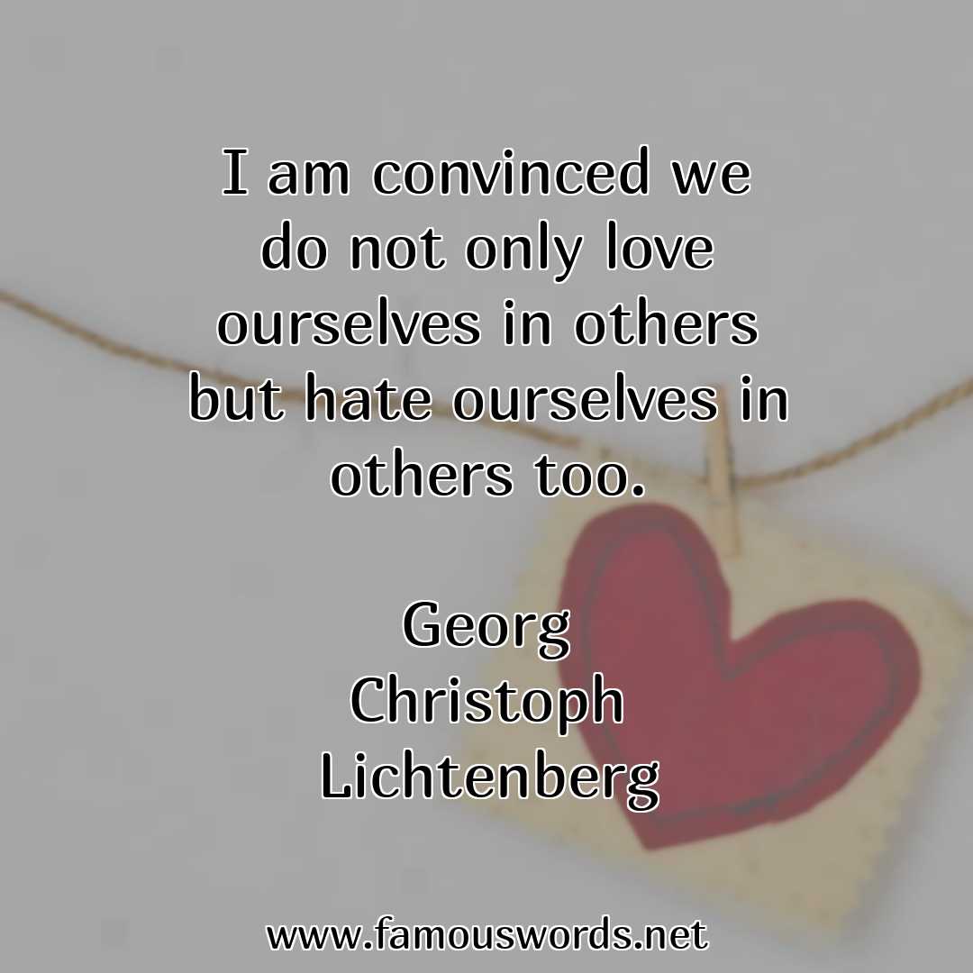The quote of the day is: “I am convinced we do not only love ourselves in others but hate ourselves in others too.” (Georg Christoph Lichtenberg)
