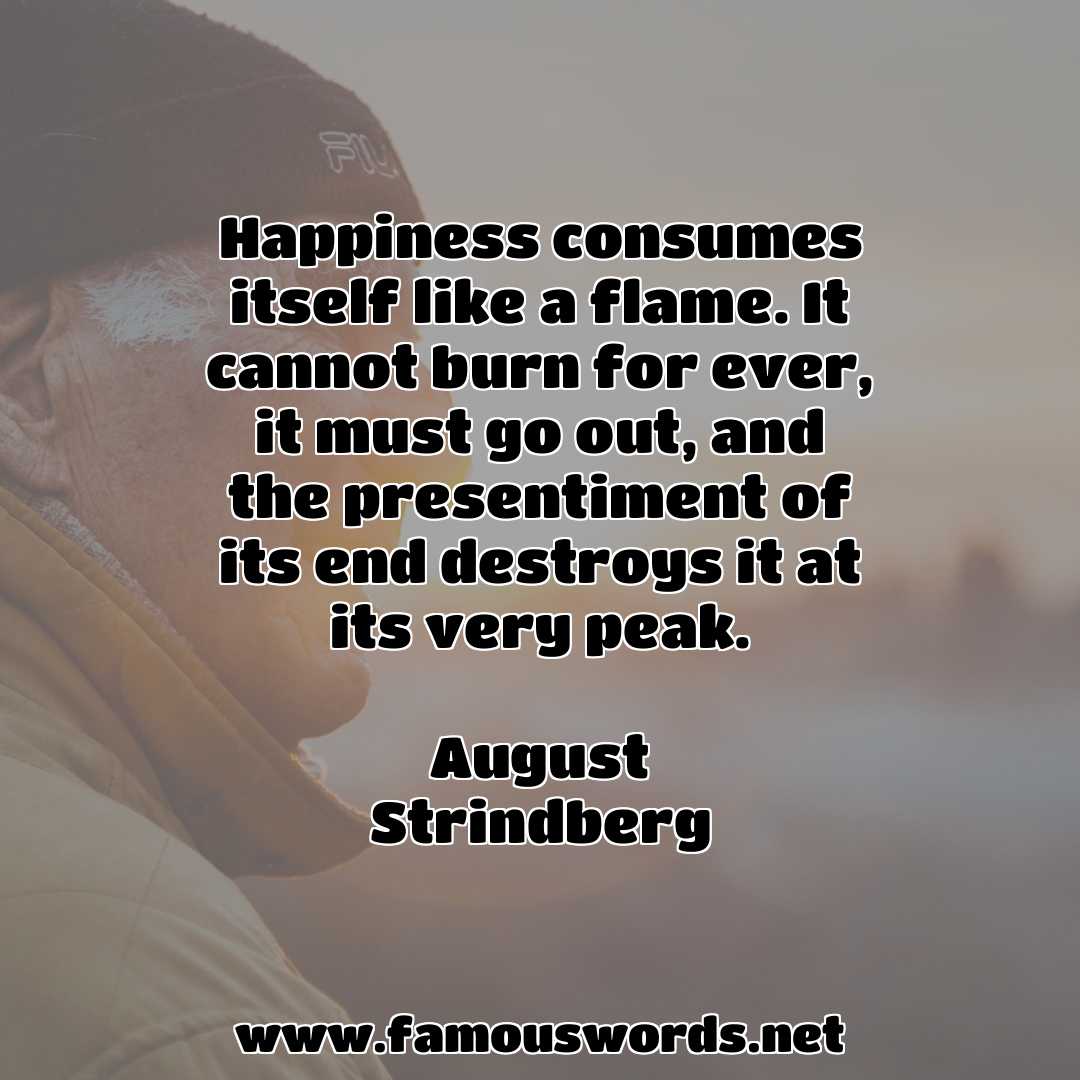 The quote of the day is: “Happiness consumes itself like a flame. It cannot burn for ever, it must go out, and the presentiment of its end destroys it at its very peak.” (August Strindberg)