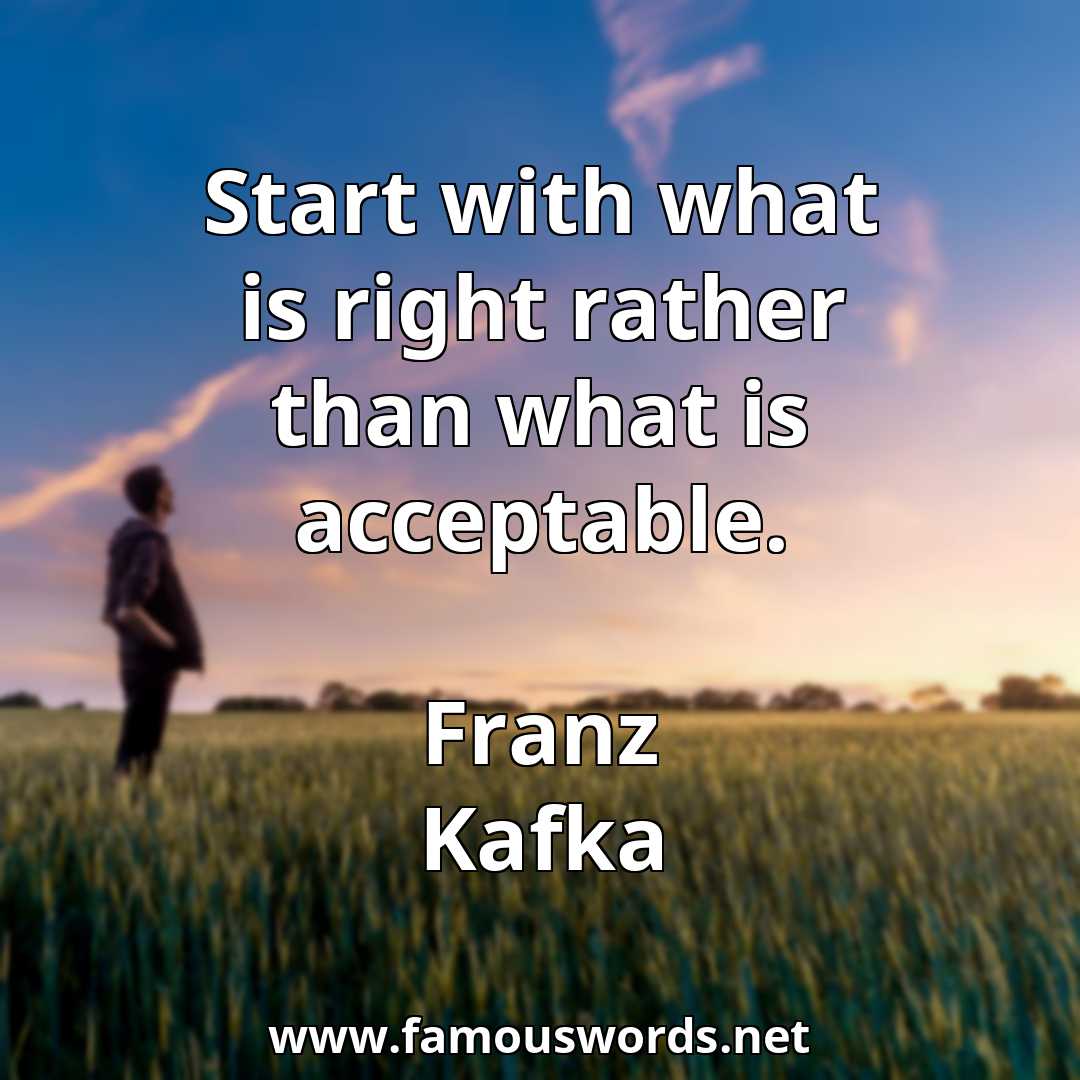 Today’s quote of the day is: “Start with what is right rather than what is acceptable.” (Franz Kafka)