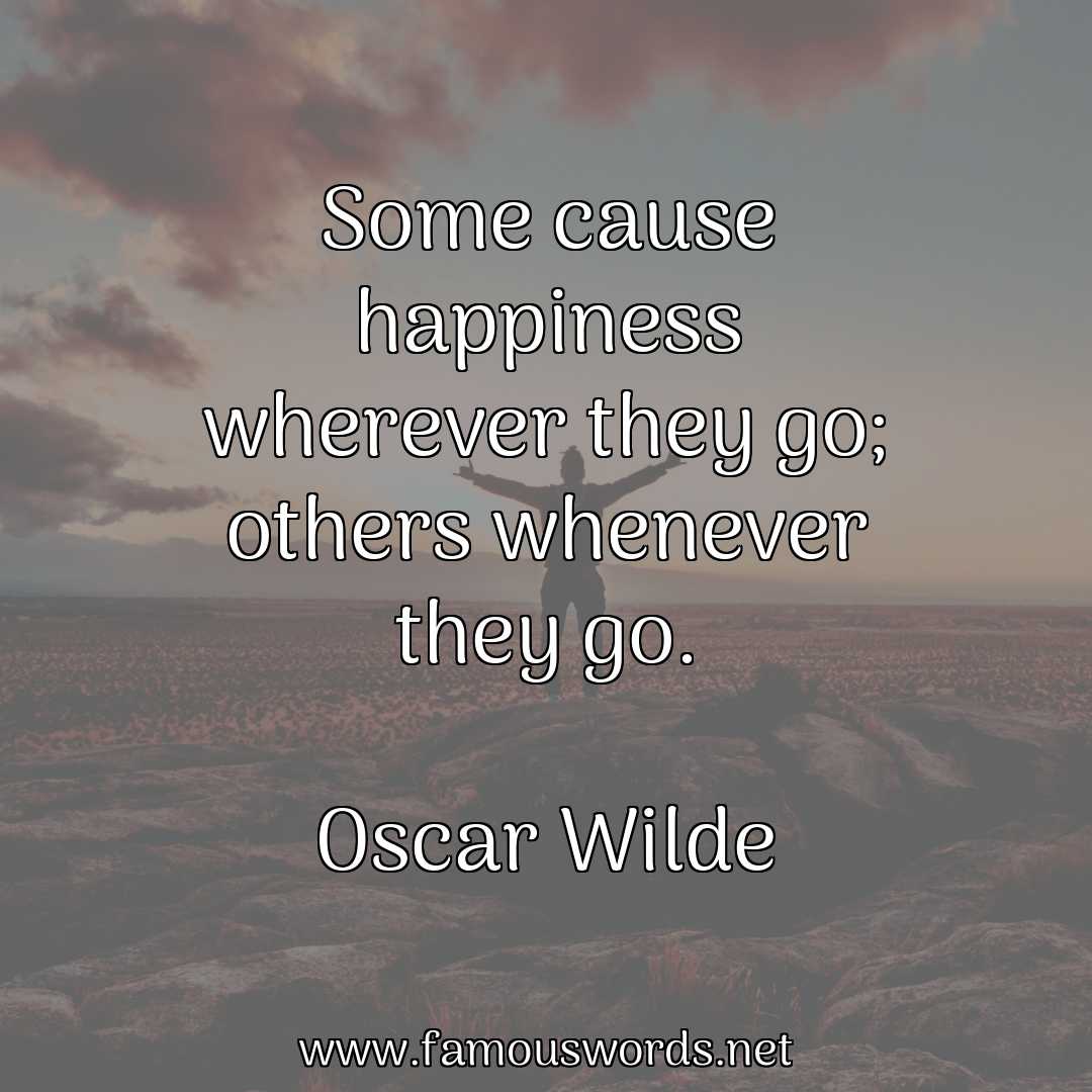 Today’s quote of the day is: “Some cause happiness wherever they go; others whenever they go.” (Oscar Wilde)