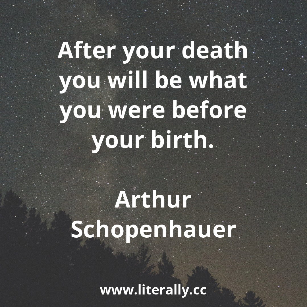 The quote of the day is: “After your death you will be what you were before your birth.” (Arthur Schopenhauer)