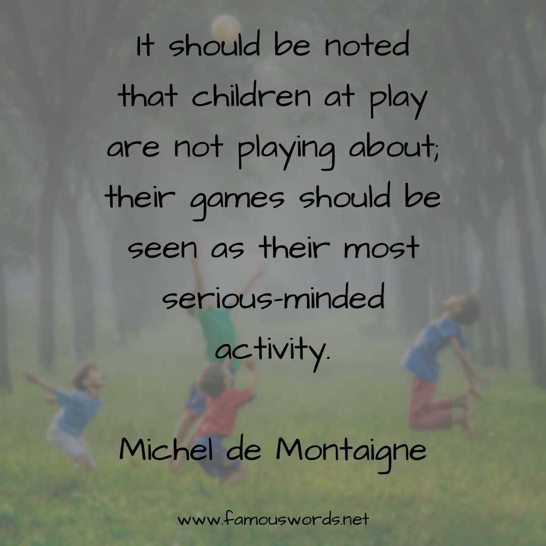 Today’s quote of the day is: “It should be noted that children at play are not playing about; their games should be seen as their most serious-minded activity.” (Michel de Montaigne)