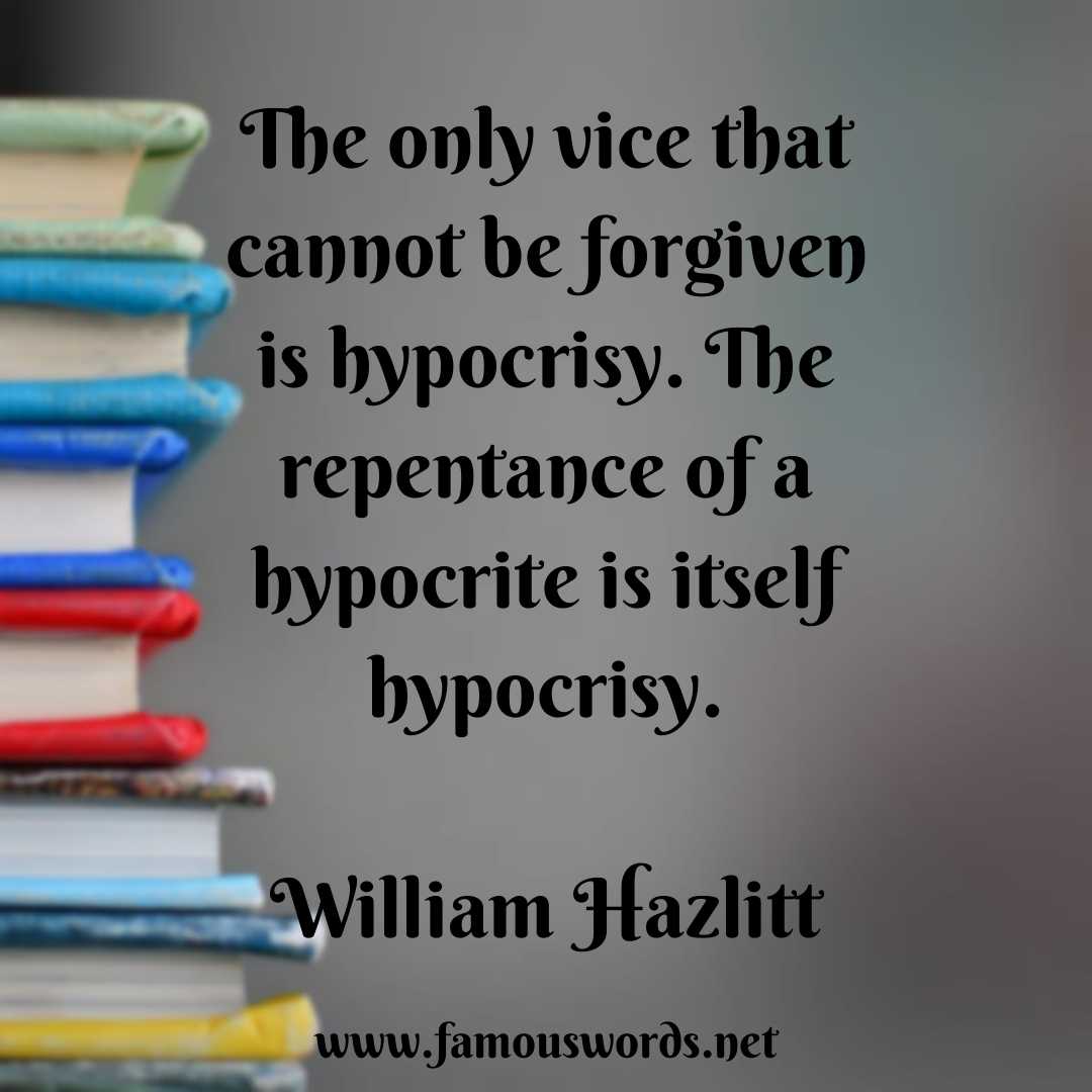 The quote of the day is: “The only vice that cannot be forgiven is hypocrisy. The repentance of a hypocrite is itself hypocrisy.” (William Hazlitt)