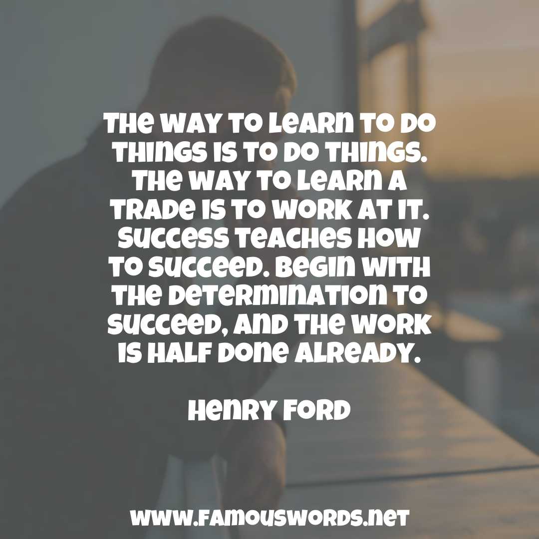 The quote of the day is: “The way to learn to do things is to do things. The way to learn a trade is to work at it. Success teaches how to succeed. Begin with the determination to succeed, and the work is half done already.” (Henry Ford)