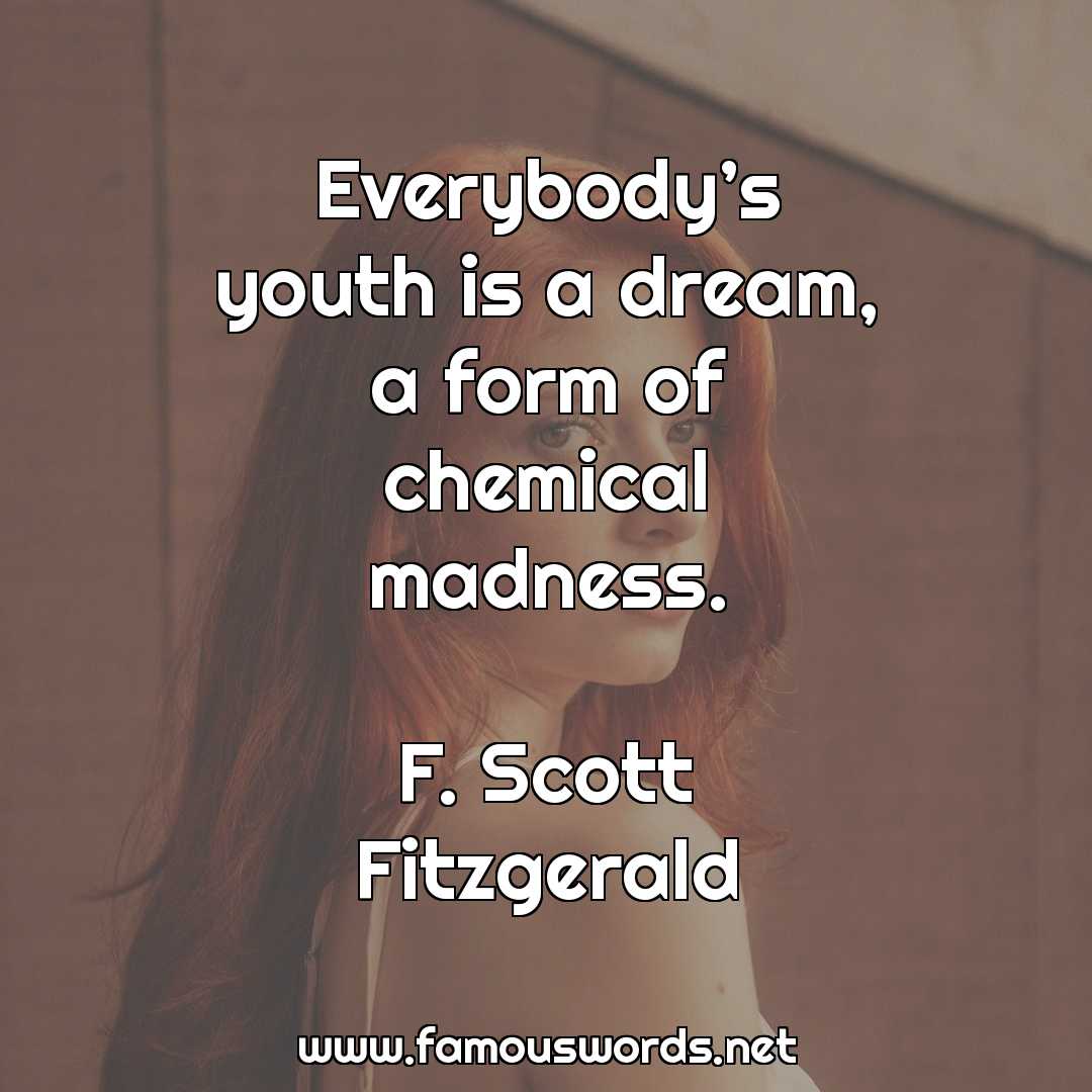 The quote of the day is: “Everybody’s youth is a dream, a form of chemical madness.” (F. Scott Fitzgerald)