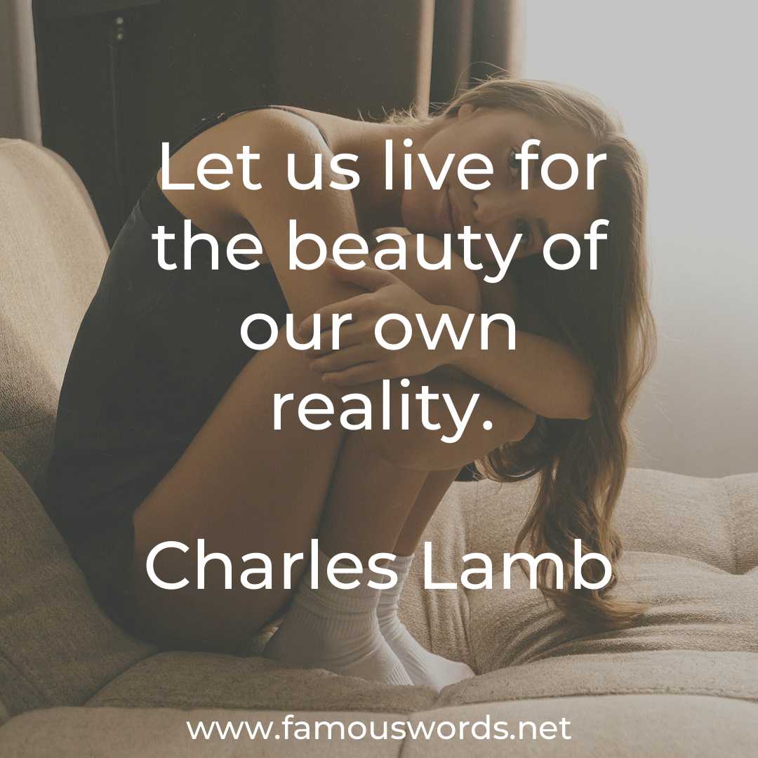 Today’s quote of the day is: “Let us live for the beauty of our own reality.” (Charles Lamb)