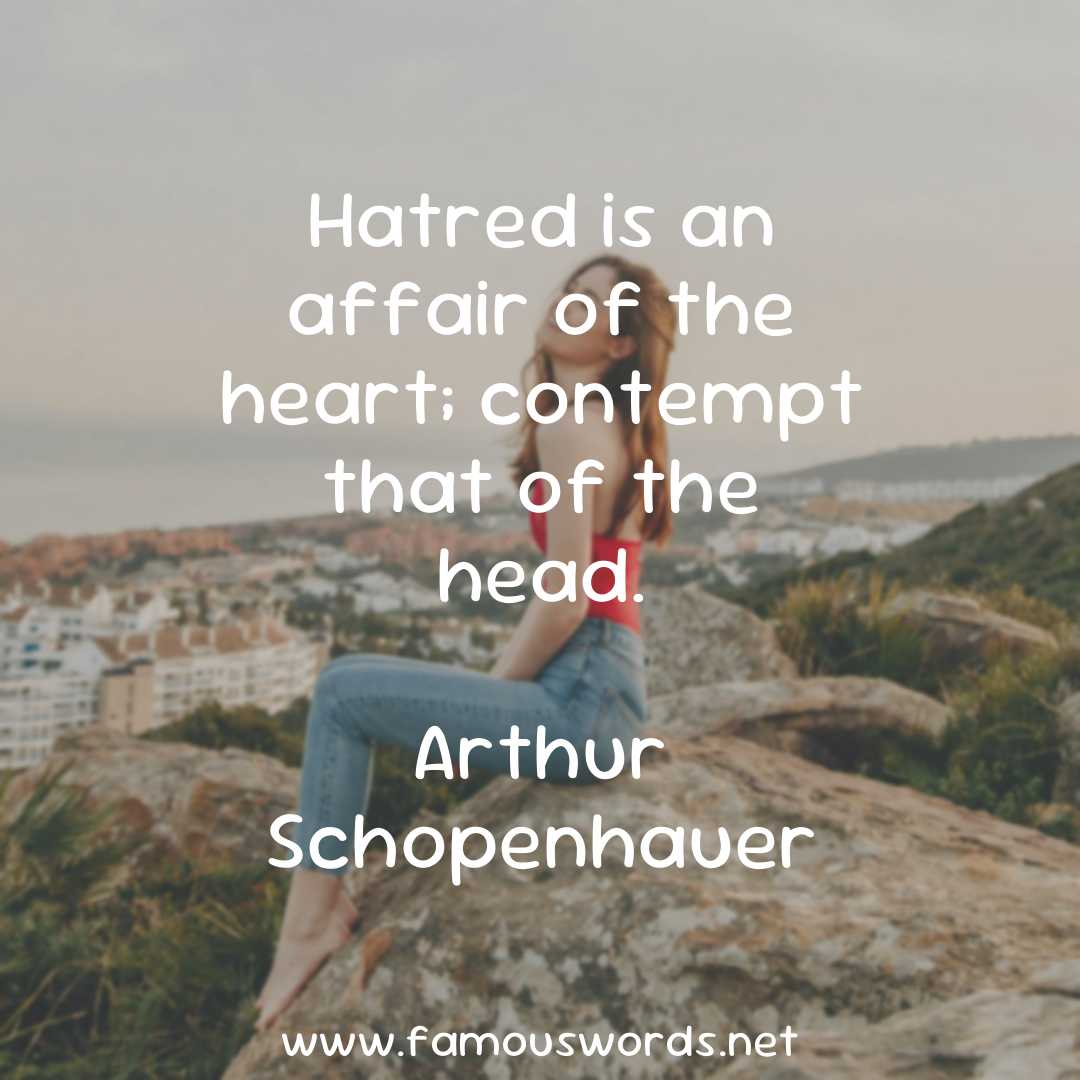 The quote of the day is: “Hatred is an affair of the heart; contempt that of the head.” (Arthur Schopenhauer)