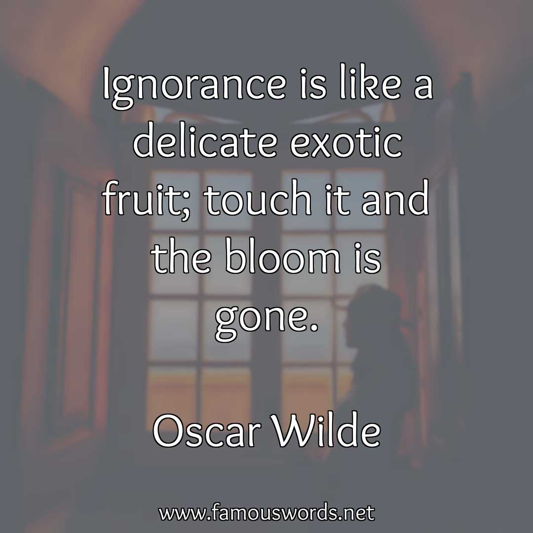 Today’s quote of the day is: “Ignorance is like a delicate exotic fruit; touch it and the bloom is gone.” (Oscar Wilde)