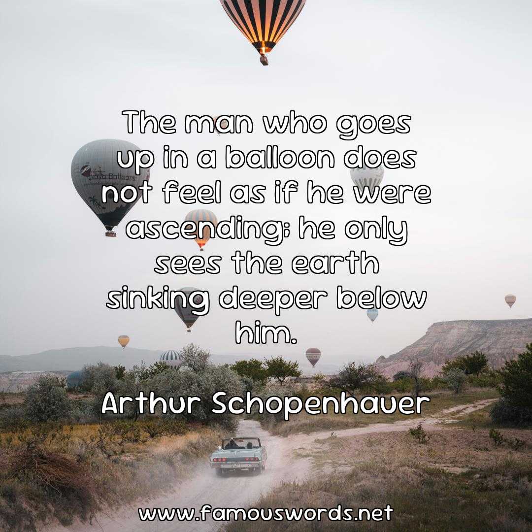 Today’s quote of the day is: “The man who goes up in a balloon does not feel as if he were ascending; he only sees the earth sinking deeper below him.” (Arthur Schopenhauer)