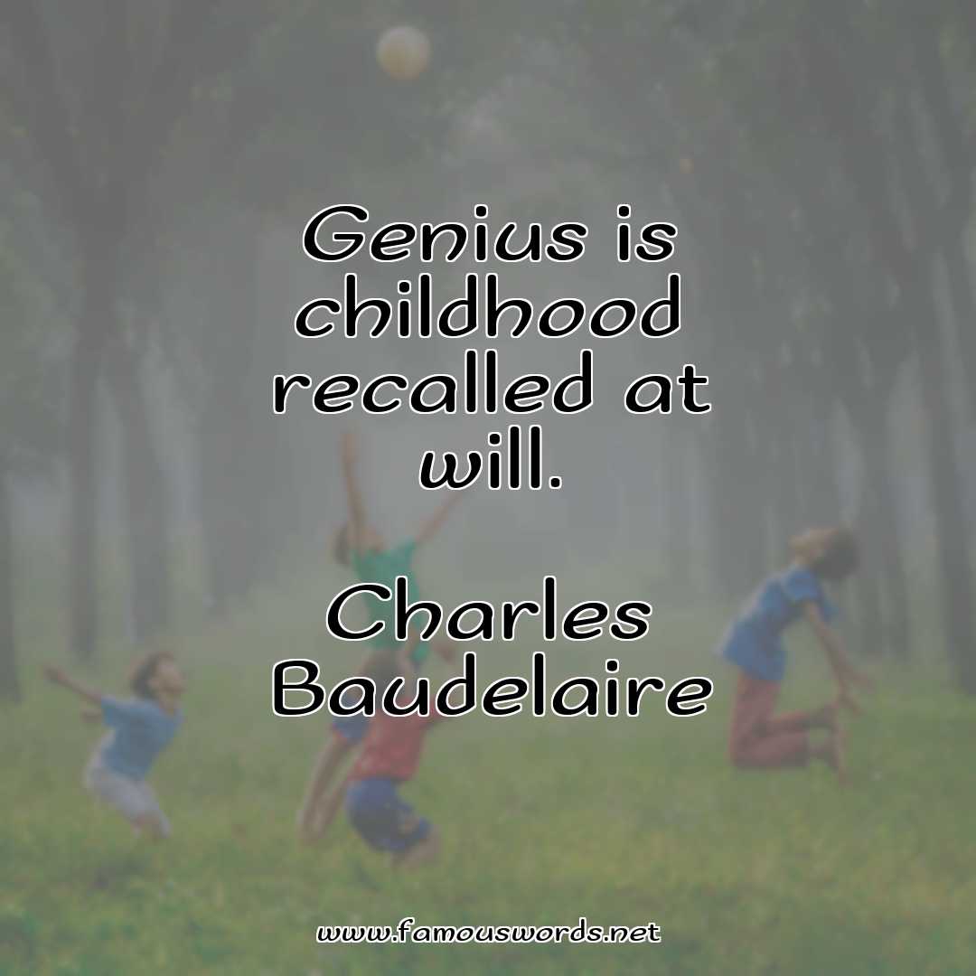 The quote of the day is: “Genius is childhood recalled at will.” (Charles Baudelaire)