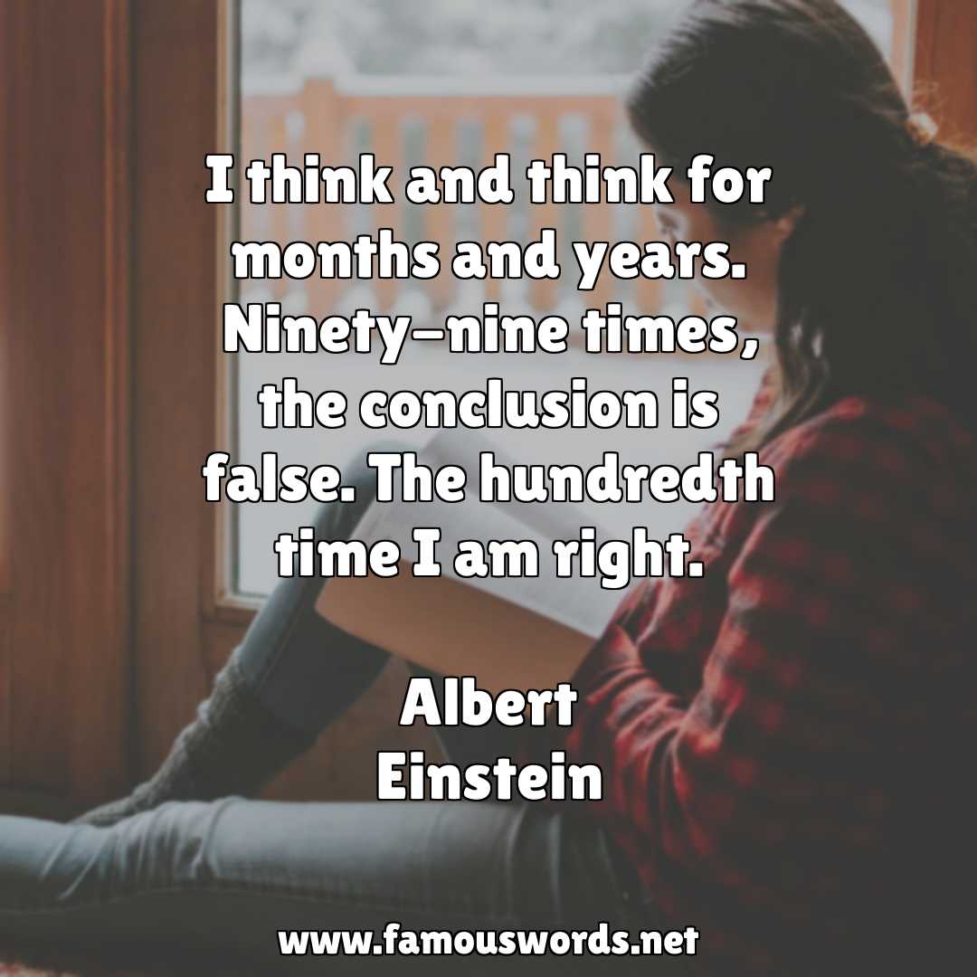 Today’s quote of the day is: “I think and think for months and years. Ninety-nine times, the conclusion is false. The hundredth time I am right.” (Albert Einstein)