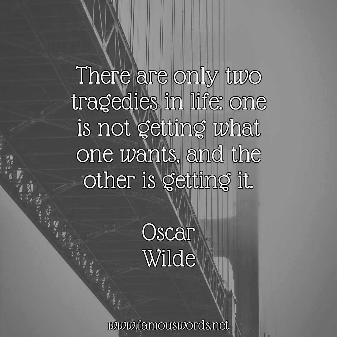 Today’s quote of the day is: “There are only two tragedies in life: one is not getting what one wants, and the other is getting it.” (Oscar Wilde)