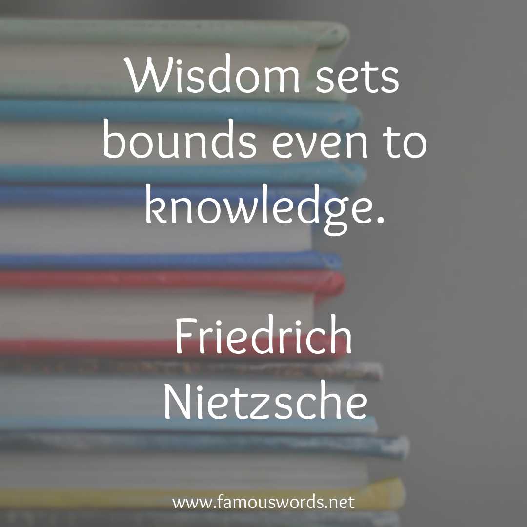 The quote of the day is: “Wisdom sets bounds even to knowledge.” (Friedrich Nietzsche)