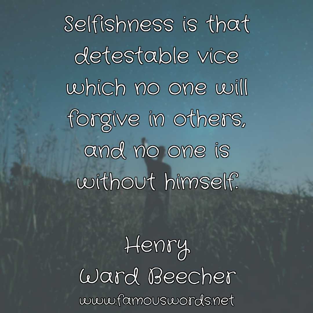 The quote of the day is: “Selfishness is that detestable vice which no one will forgive in others, and no one is without himself.” (Henry Ward Beecher)