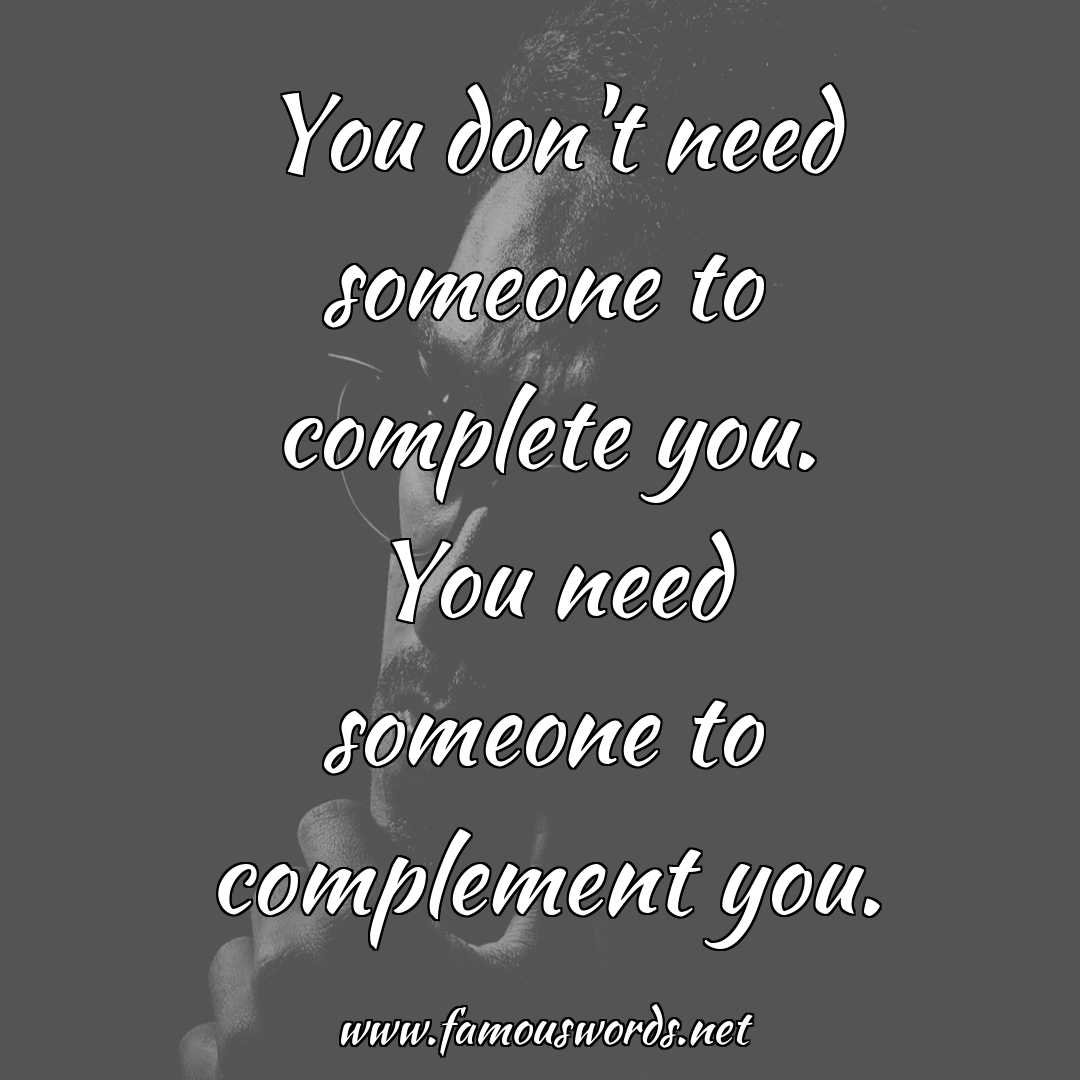 The saying of the day is: “You don’t need someone to complete you. You need someone to complement you.”