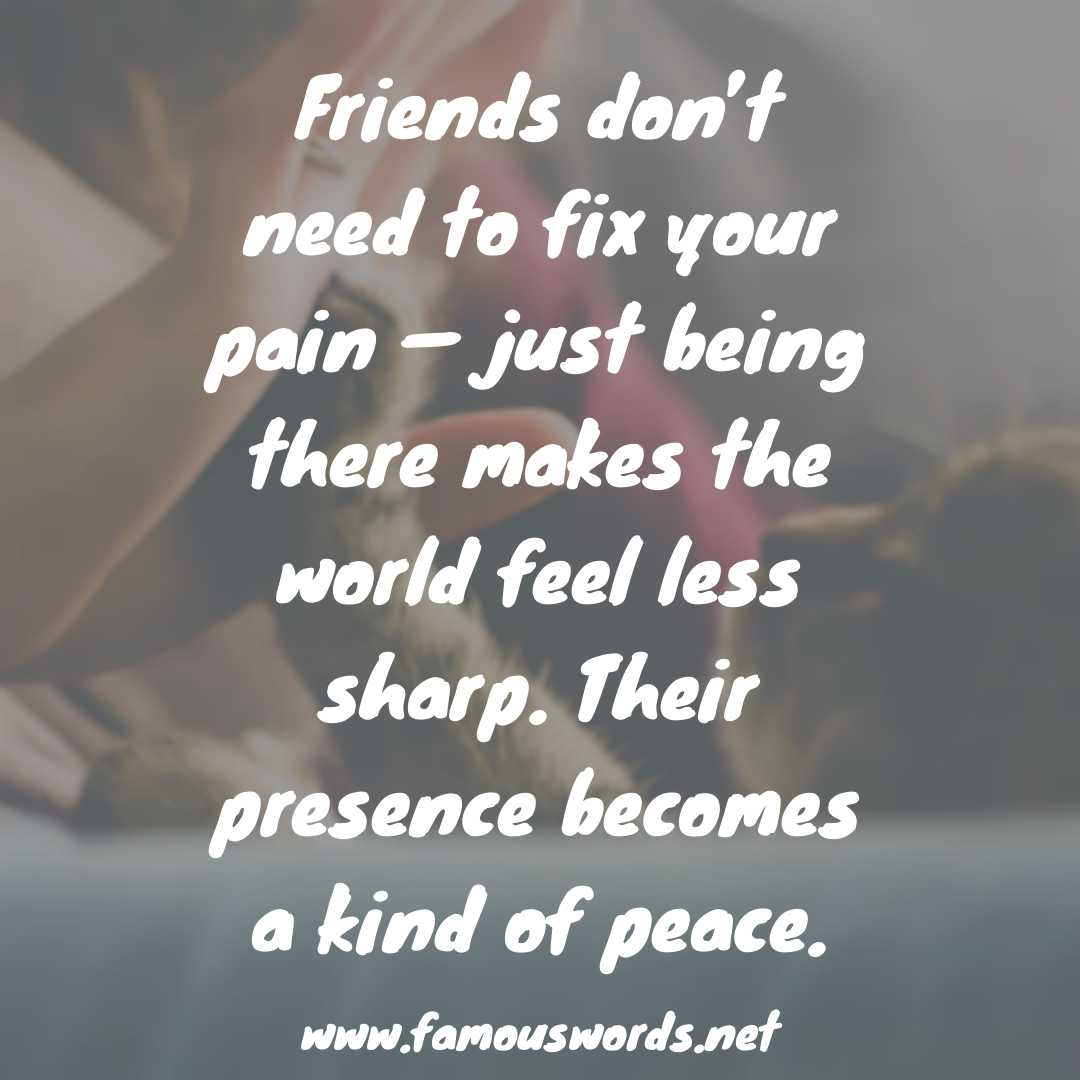 Today’s saying of the day is: “Friends don’t need to fix your pain — just being there makes the world feel less sharp. Their presence becomes a kind of peace.”