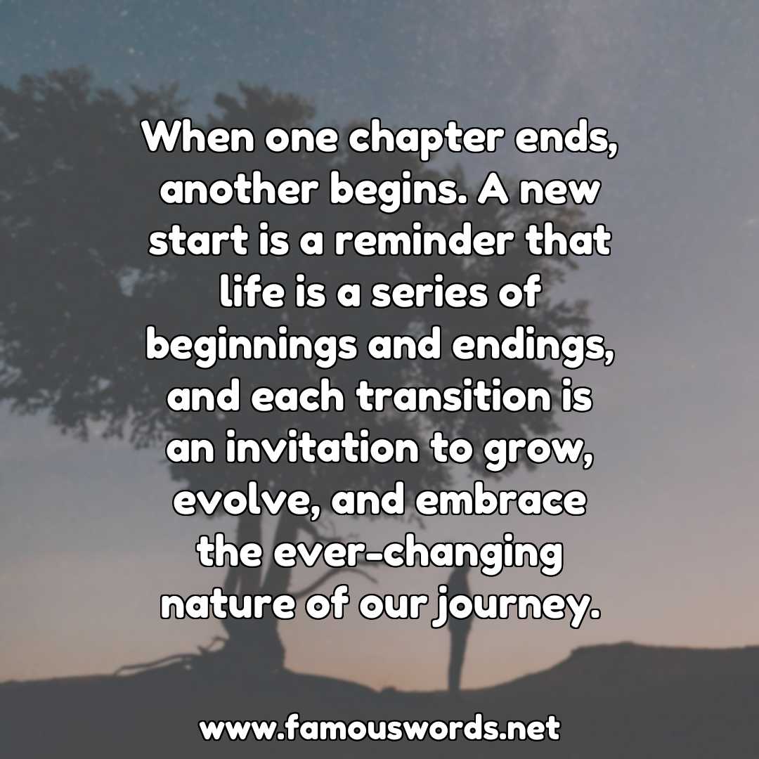 The saying of the day is: “When one chapter ends, another begins. A new start is a reminder that life is a series of beginnings and endings, and each transition is an invitation to grow, evolve, and embrace the ever-changing nature of our journey.”