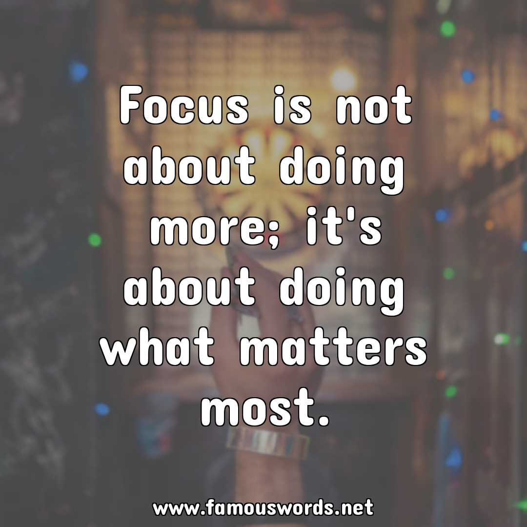 The saying of the day is: “Focus is not about doing more; it’s about doing what matters most.”