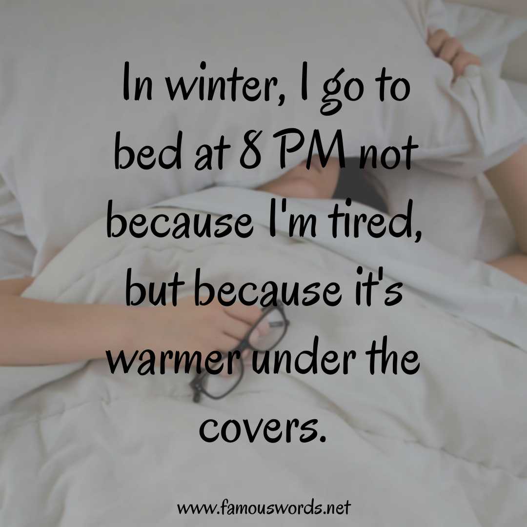 The saying of the day is: “In winter, I go to bed at 8 PM not because I’m tired, but because it’s warmer under the covers.”
