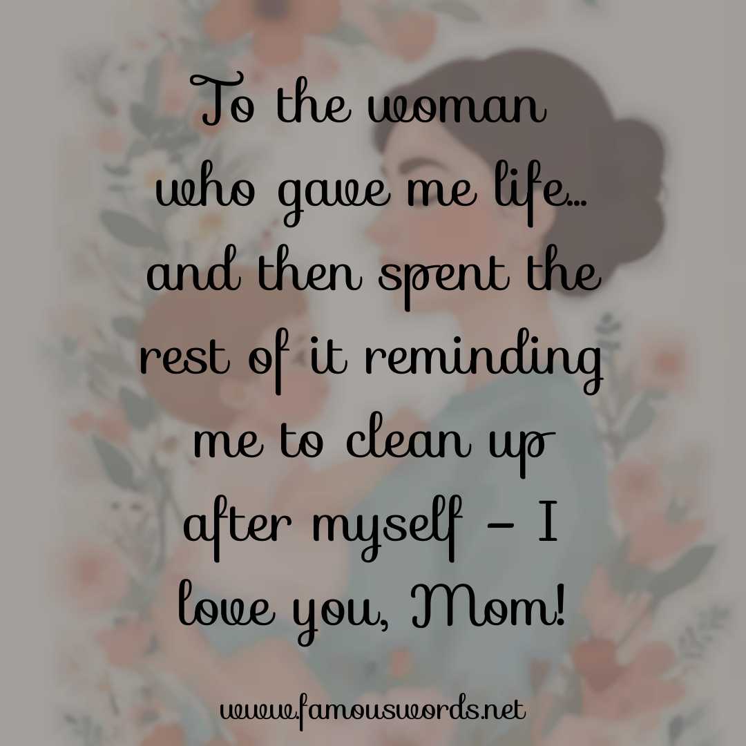 Today’s saying of the day is: “To the woman who gave me life… and then spent the rest of it reminding me to clean up after myself – I love you, Mom!”
