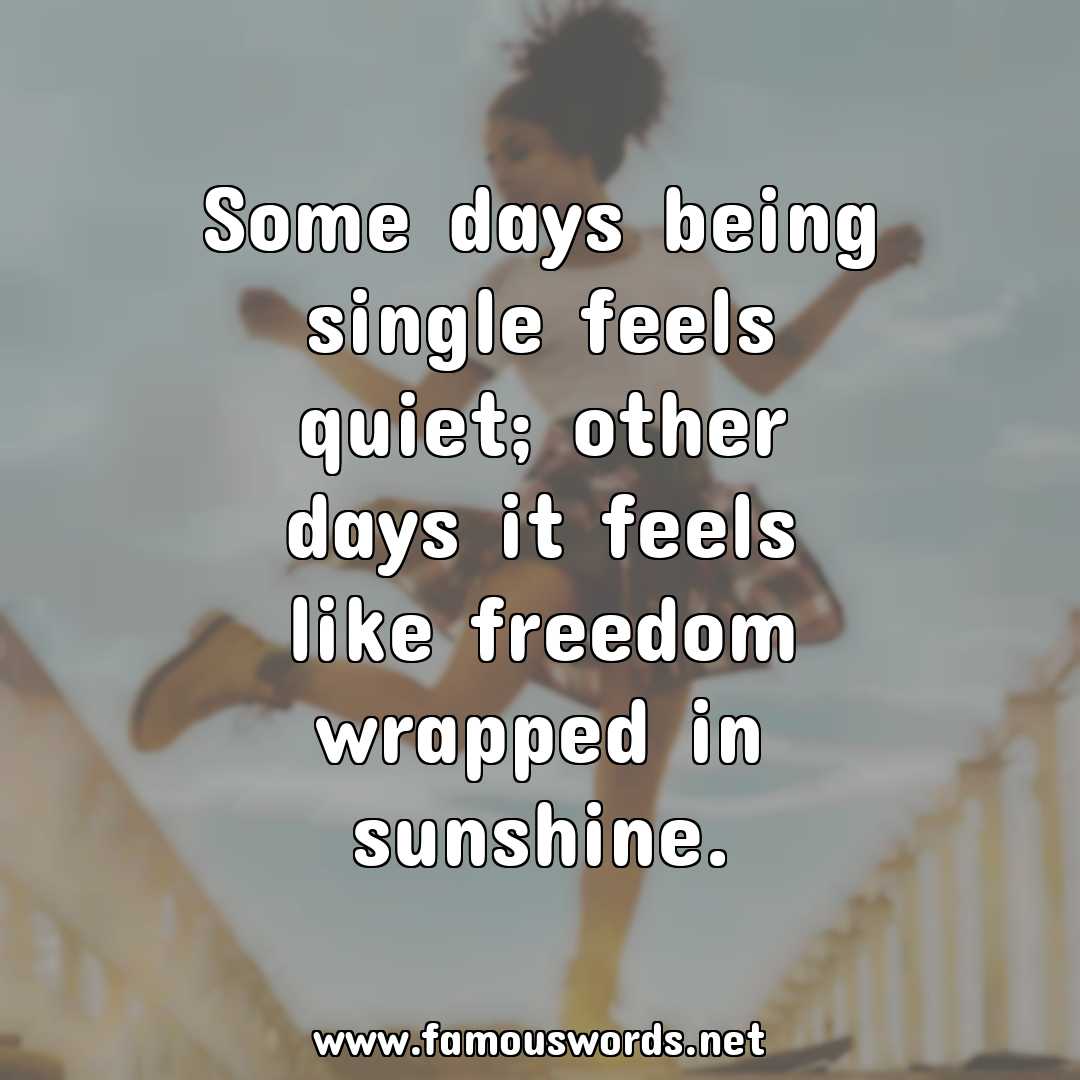 The saying of the day is: “Some days being single feels quiet; other days it feels like freedom wrapped in sunshine.”
