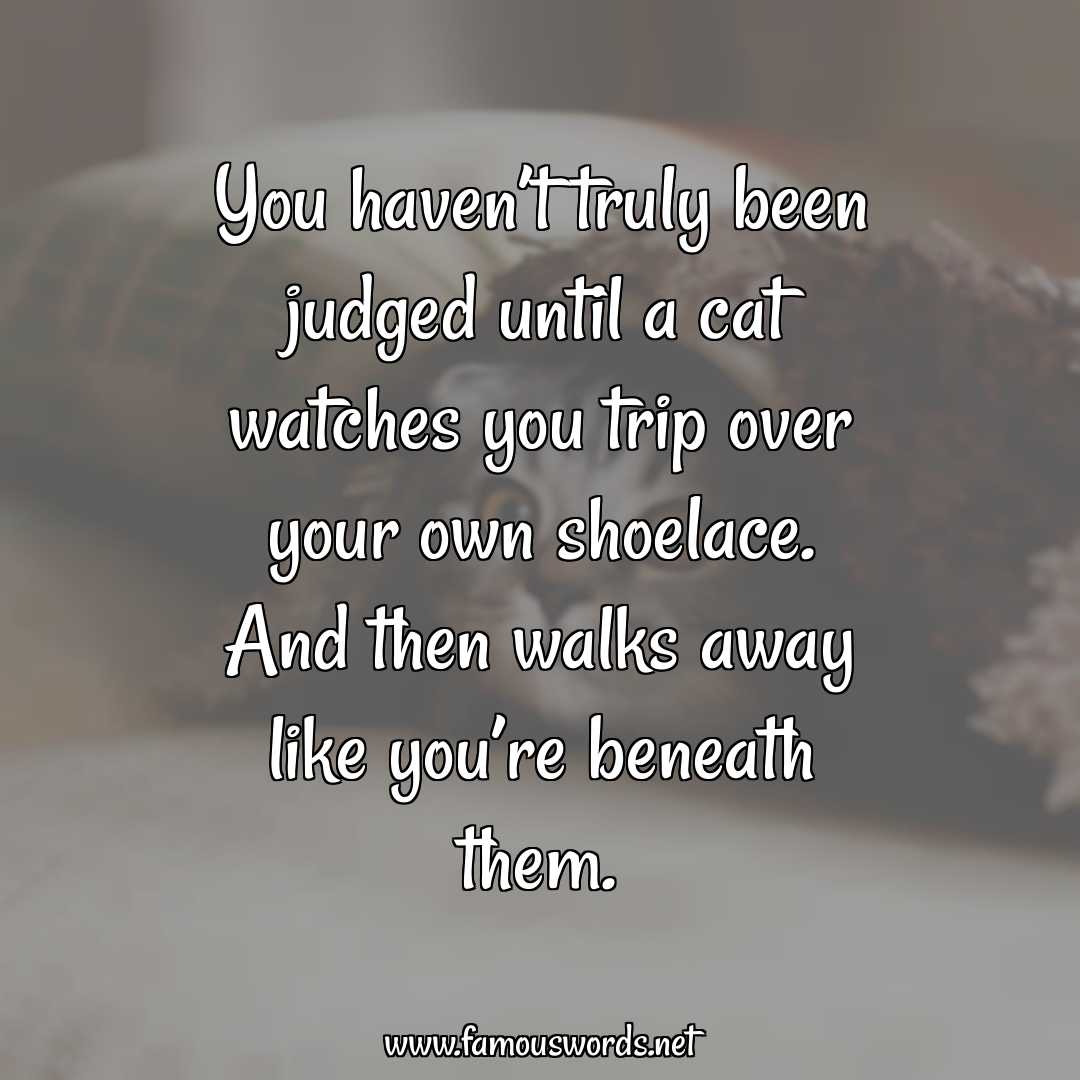 The saying of the day is: “You haven’t truly been judged until a cat watches you trip over your own shoelace. And then walks away like you’re beneath them.”