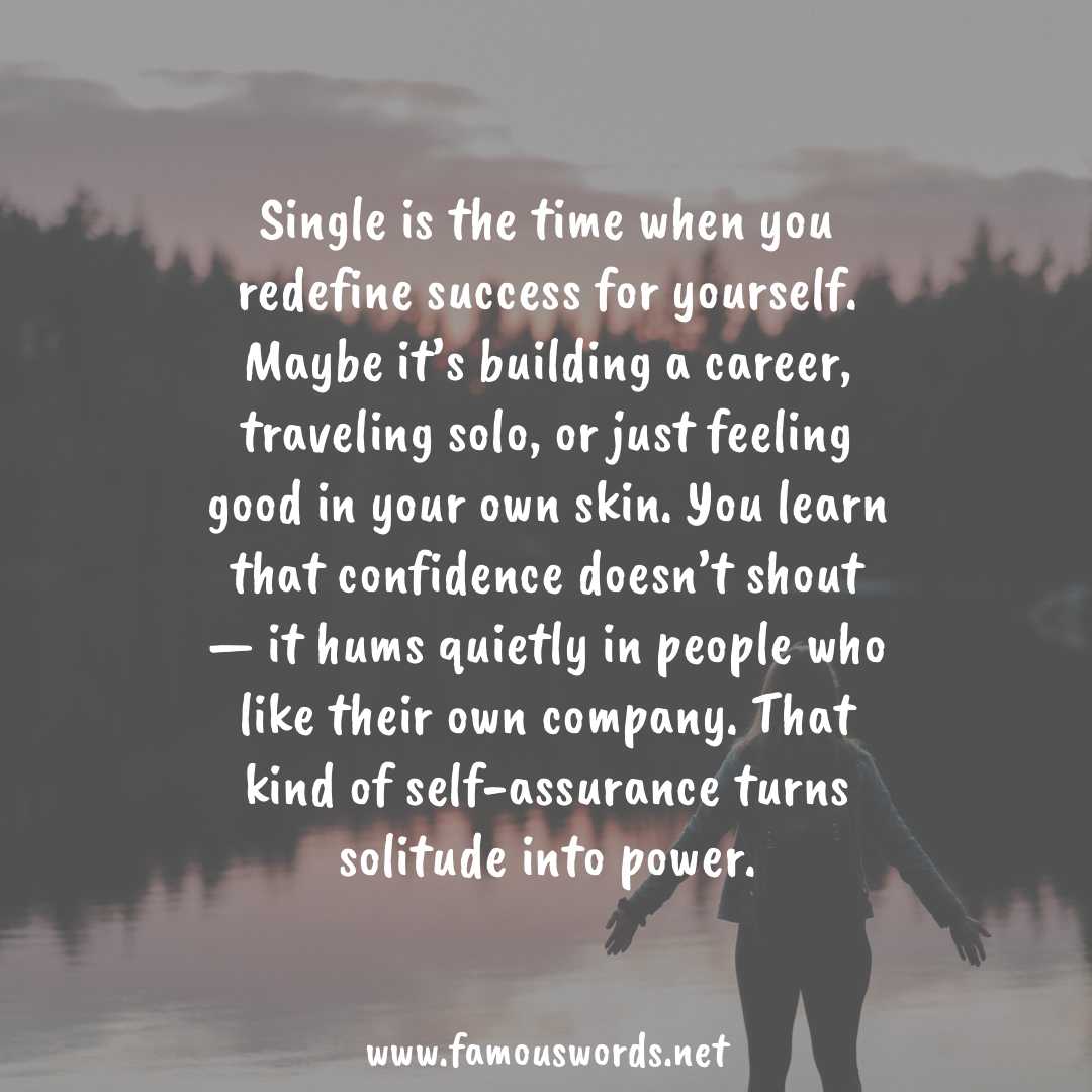 Today’s saying of the day is: “Single is the time when you redefine success for yourself. Maybe it’s building a career, traveling solo, or just feeling good in your own skin. You learn that confidence doesn’t shout — it hums quietly in people who like their own company. That kind of self-assurance turns solitude into power.”