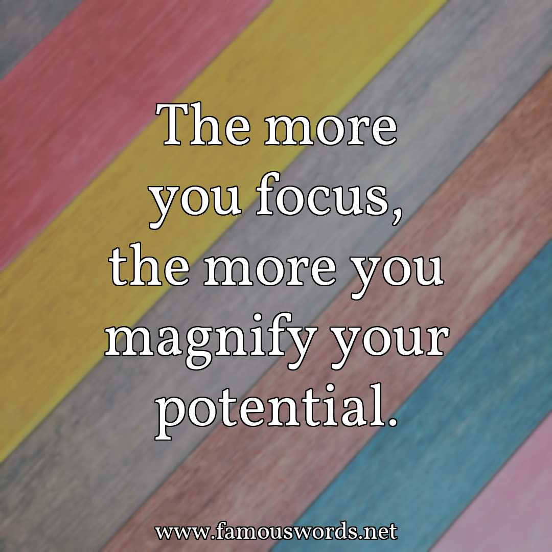 The saying of the day is: “The more you focus, the more you magnify your potential.”
