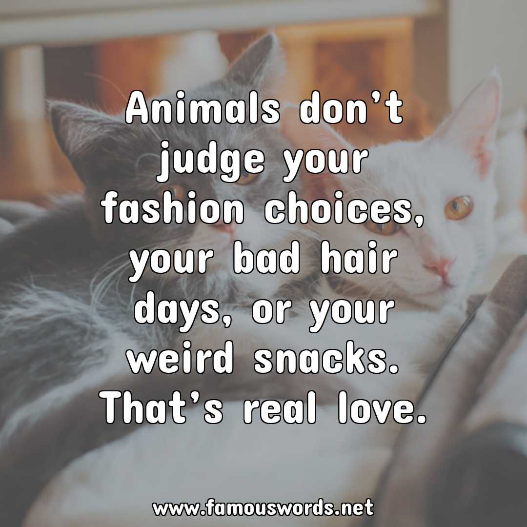 The saying of the day is: “Animals don’t judge your fashion choices, your bad hair days, or your weird snacks. That’s real love.”