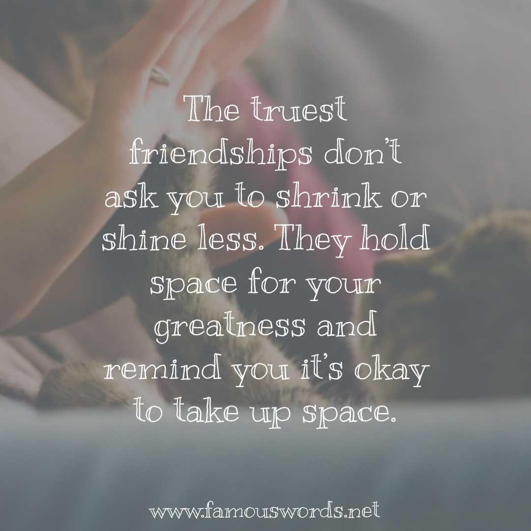 Today’s saying of the day is: “The truest friendships don’t ask you to shrink or shine less. They hold space for your greatness and remind you it’s okay to take up space.”